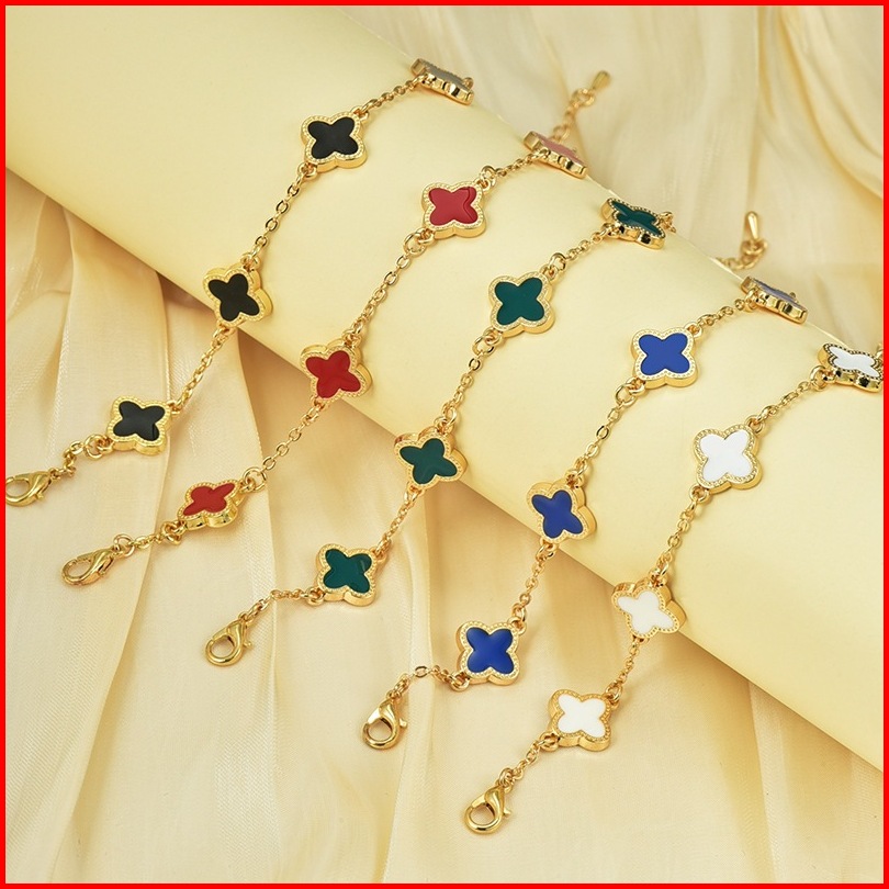 Gelang Lapis Semanggi Empat Daun Wanita Dewasa Aksesori Fashion Korea Baja Tahan Karat Anti Pudar