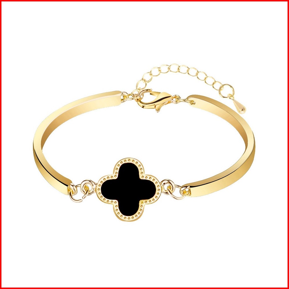 Gelang Empat Daun Semanggi Stainless Steel Anti Luntur Aksesoris Fashion Wanita Dewasa Gelang