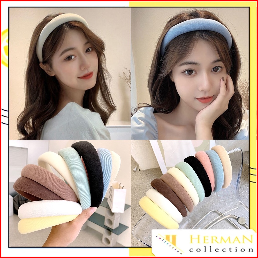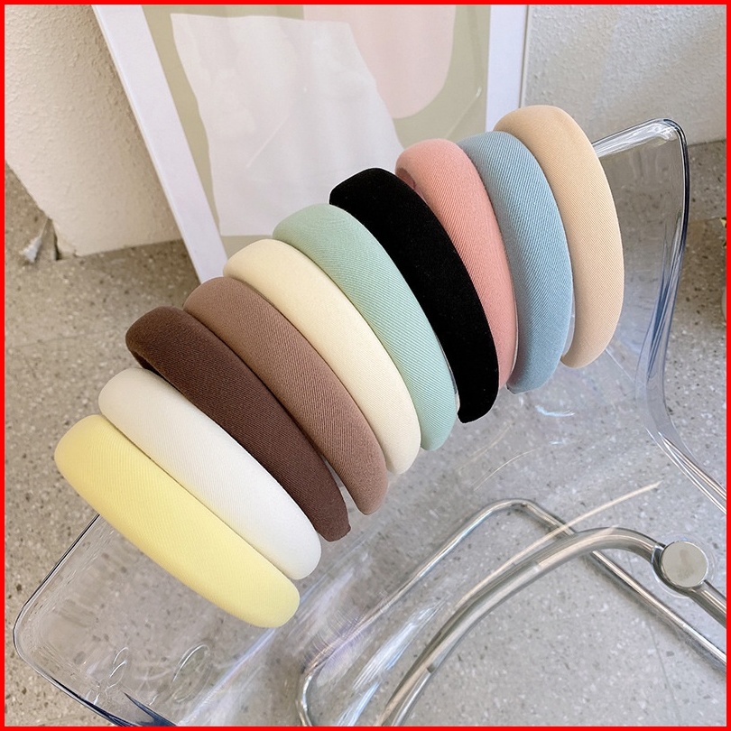 Hc Bando Kain Busa Tebal Wanita Korea Bando Nagita Polos Lebar Empuk Bandana Lembut Warna Pastel