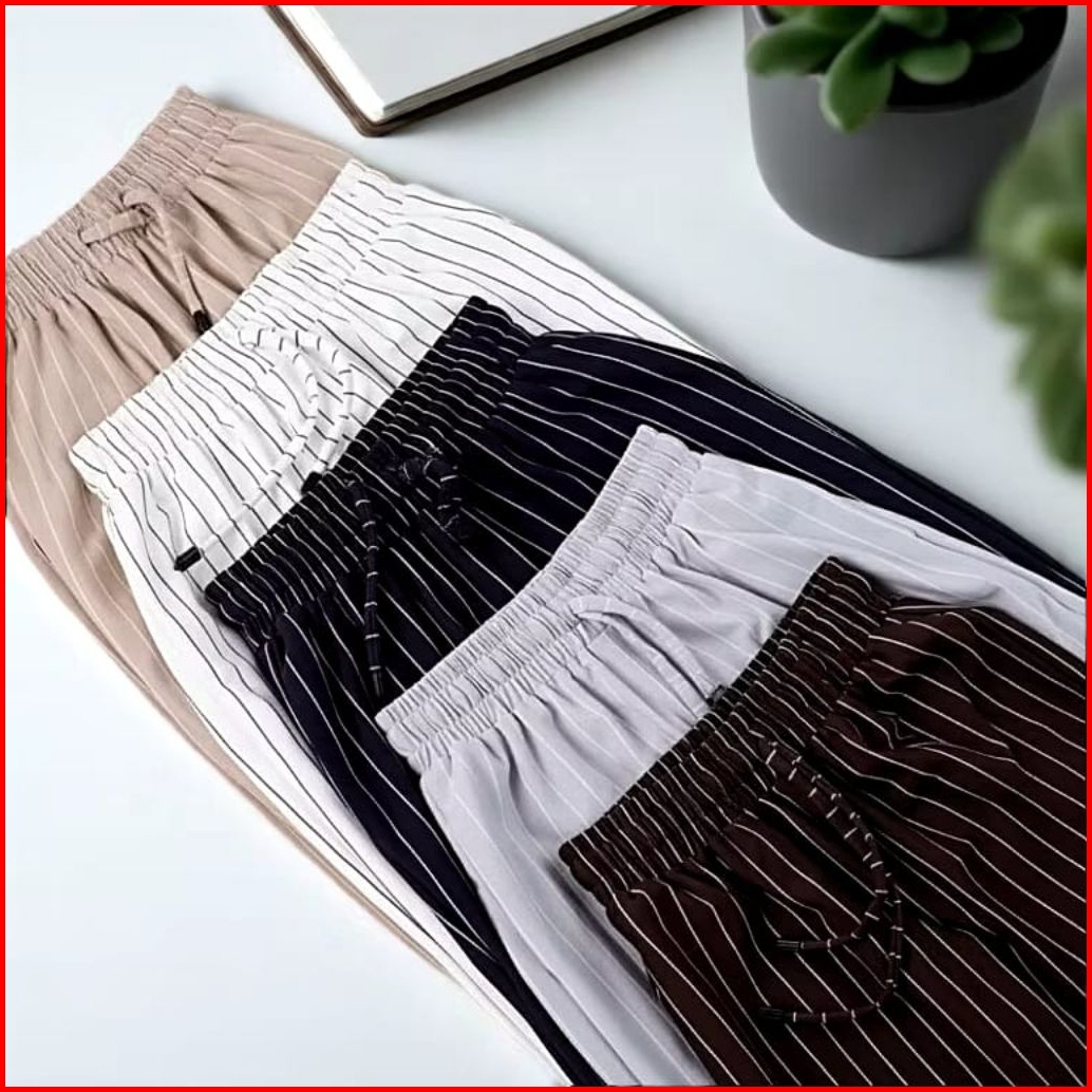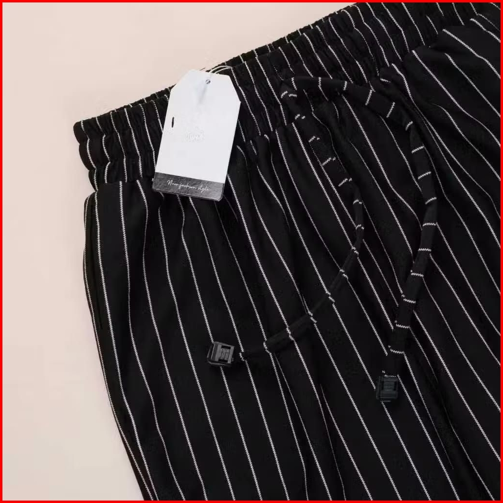Everyday Pants - Stripe Pants Bangkok - Celana Panjang Wanita Baggy Kantor Kuliah Motif Garis Kulot Pinstripe - Celana F