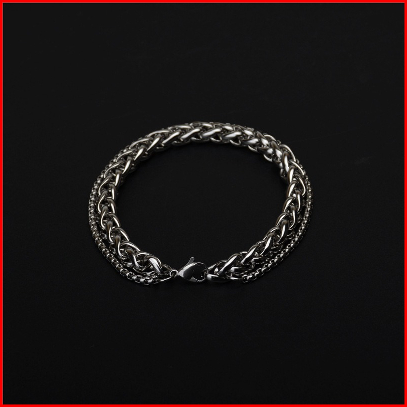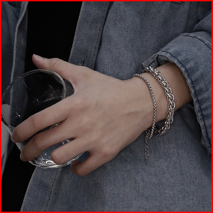 Marvis Gelang Rantai Berbagai Ukuran Titanium Anti Karat 2 Layer Silver