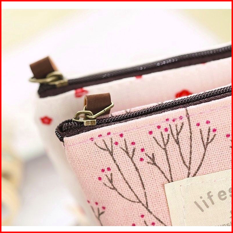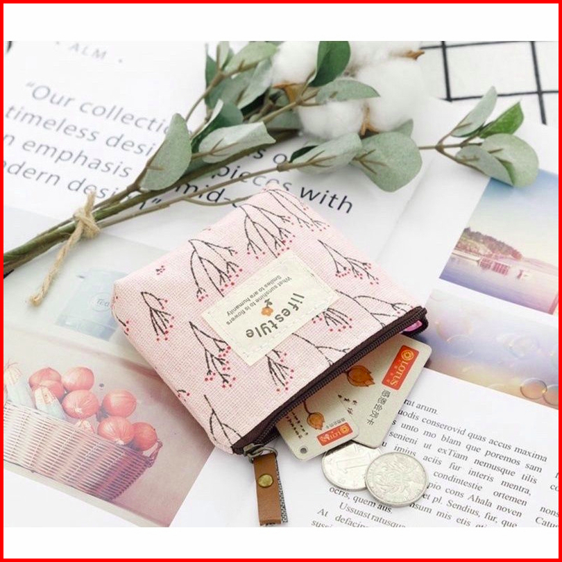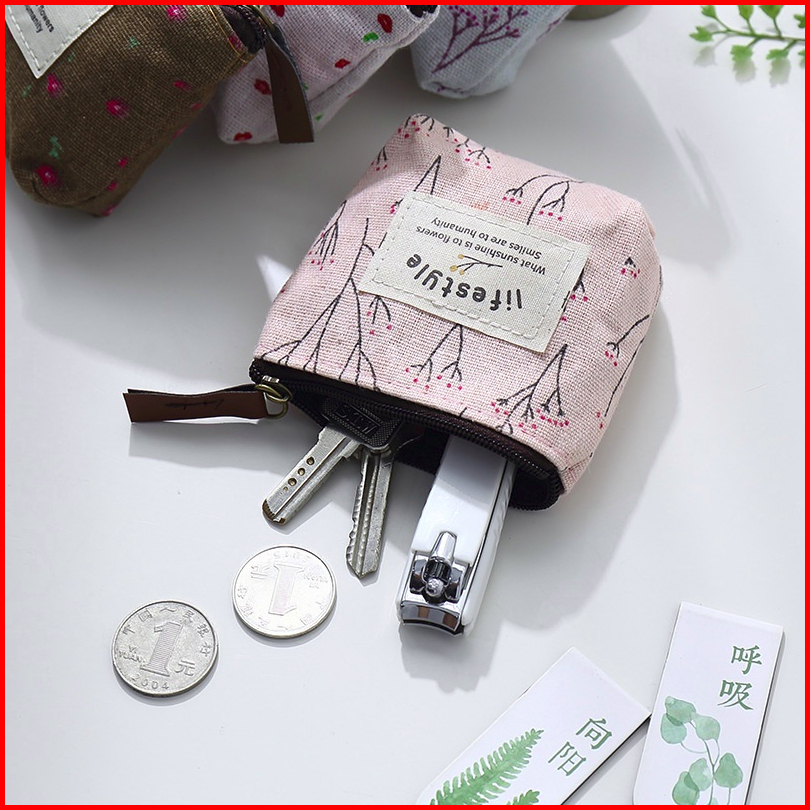 Domp006 Dompet Uang Koin Mini Motif Bunga Bahan Kanvas Fashion Import Murah