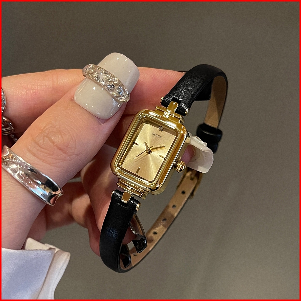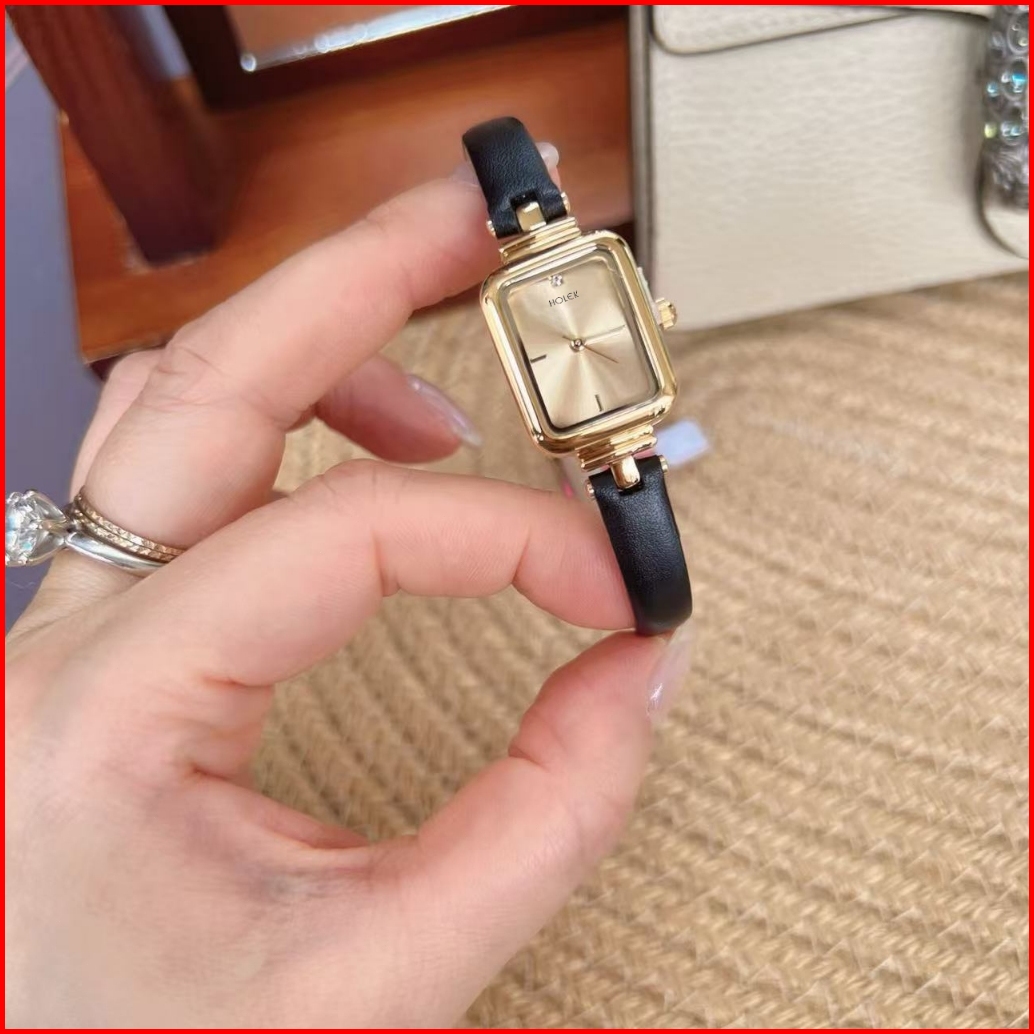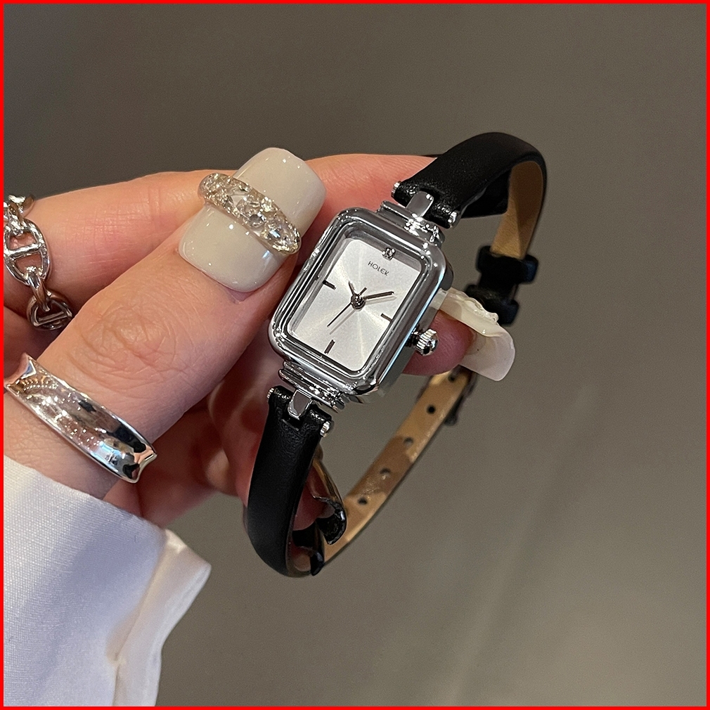 Holek 5581 Jam Tangan Wanita Tali Kulit Mini Persegi Panjang Tahan Air Mewah Baru Jam Tangan Kuarsa Elegan