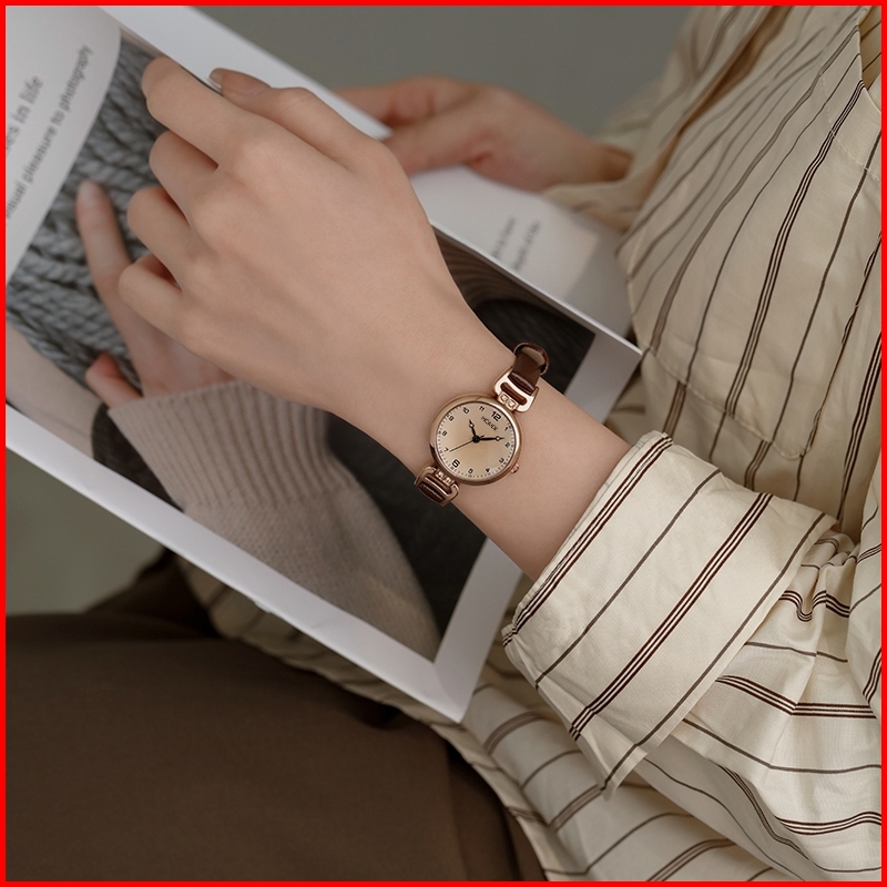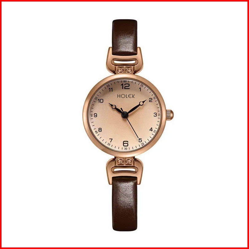 Holek 5266 Jam Tangan Wanita Temperamen Dial Kecil Sabuk Coklat Jam Tangan Wanita Kuarsa Digital