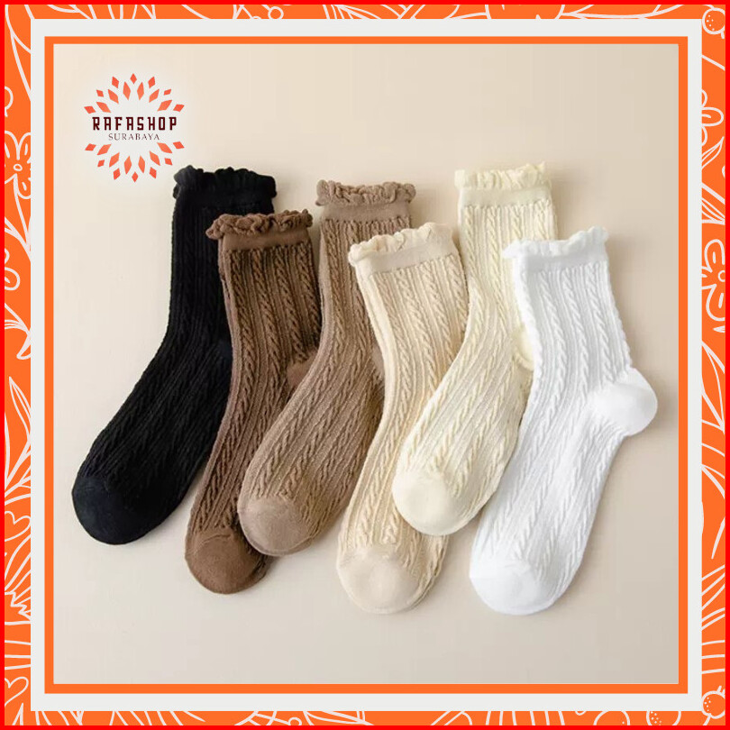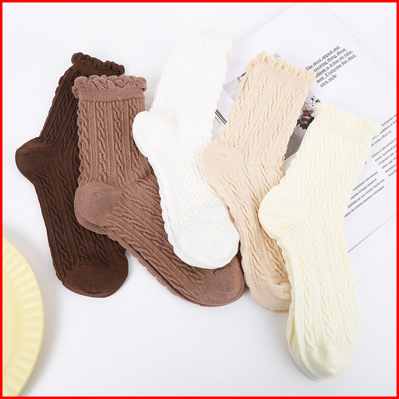Fash131 Kaos Kaki Jk Renda Kaos Kaki Setengah Betis Wanita Stoking Warna Polos Lucu Kaos Kaki Katun Setengah Betis