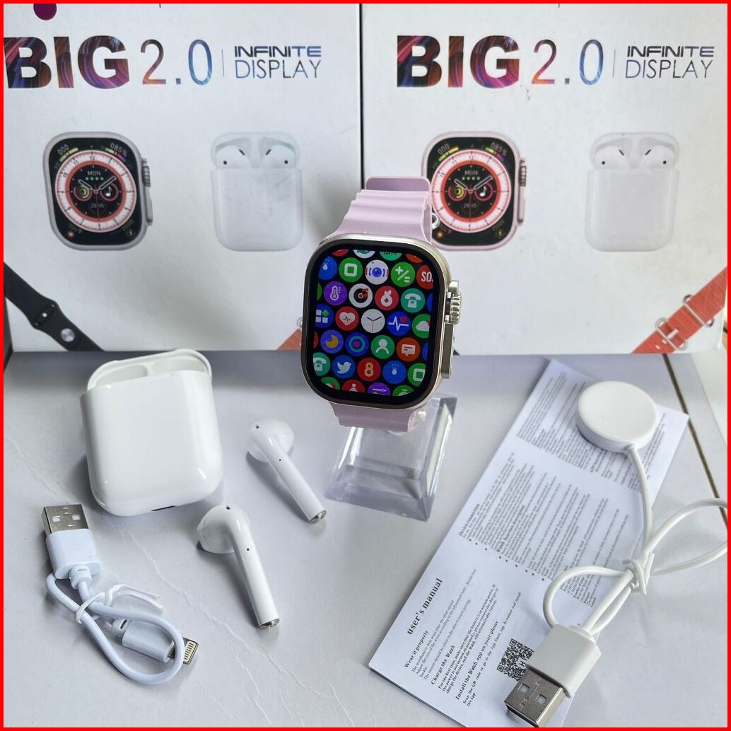 Smartwatch I8 Ultra Free 2 Tali Plus Earphone Tws Full Layar Ada Kalkulator Support Android Ios