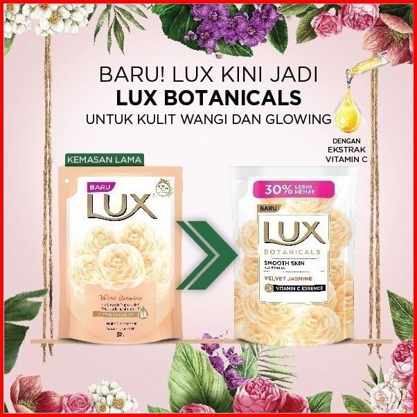 Lux Botanicals Refill Body Wash Pelembap Velvet Jasmine With Vitamin C 850ml - Sabun Mandi Cair Tnt Beauty Shop