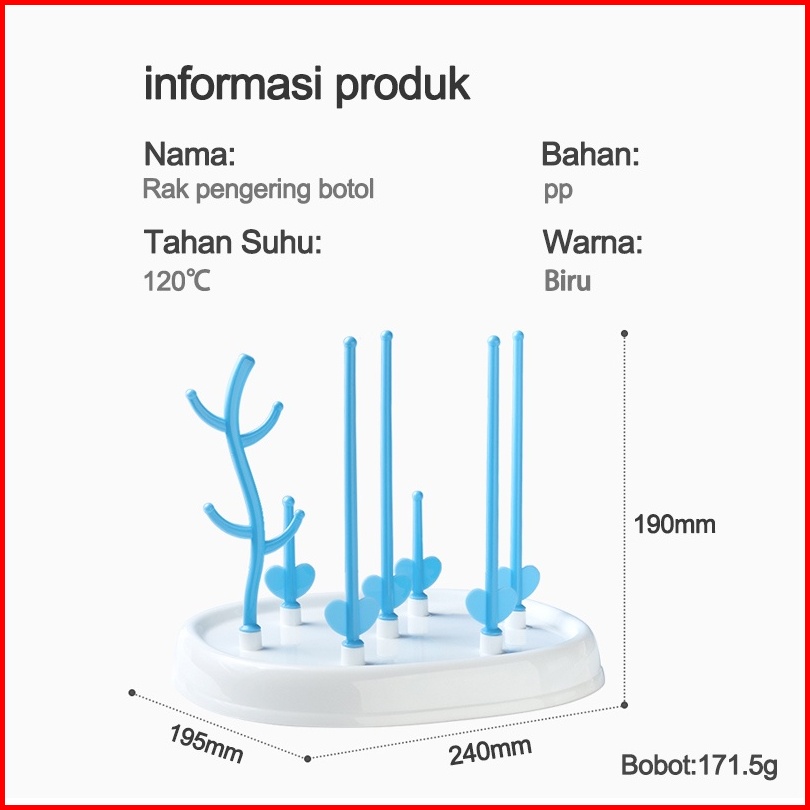 Hippo Land Rak Pengering Botol Susu Bayi Tempat Tirisan Dot Gelas Mug Cangkir Bottle Drying Rack Serbaguna Stand Penyimp