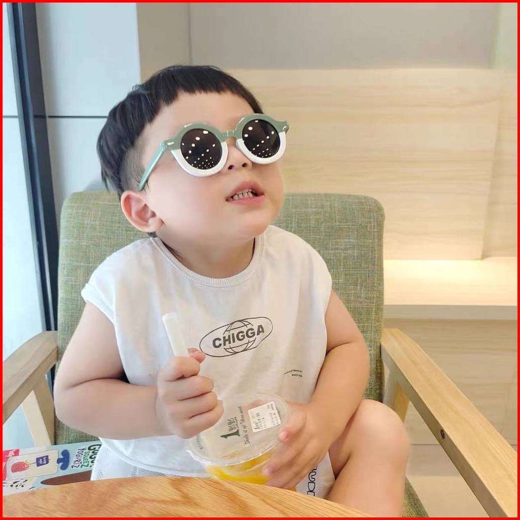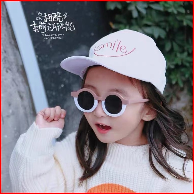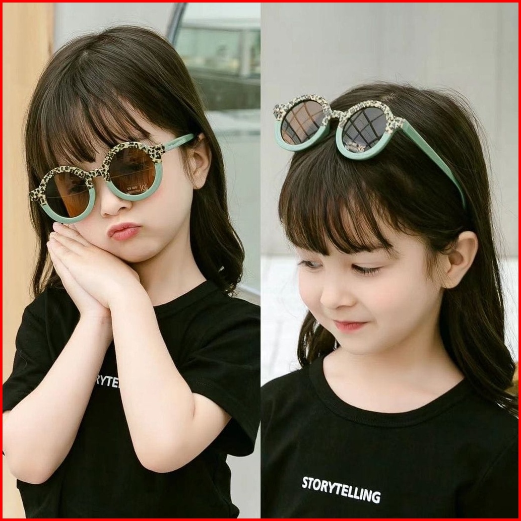 Fash025 Kacamata Anak New Trend Fashion Anak Terbaru Bulat Kacamata Hitam Motif Uv Protection High Quality Import Kacama