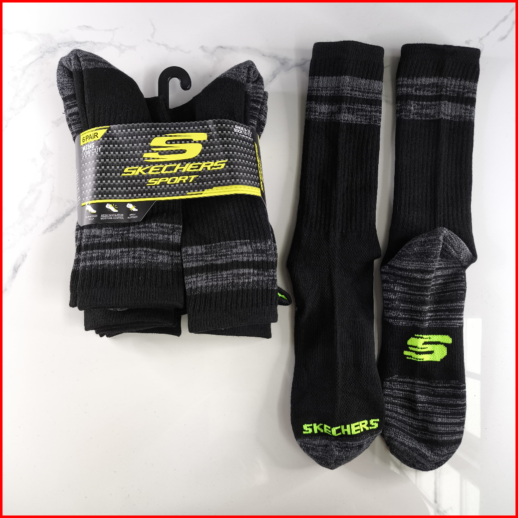 Kaos Kaki Skechers Men Panjang Crew Socks 6 Pack