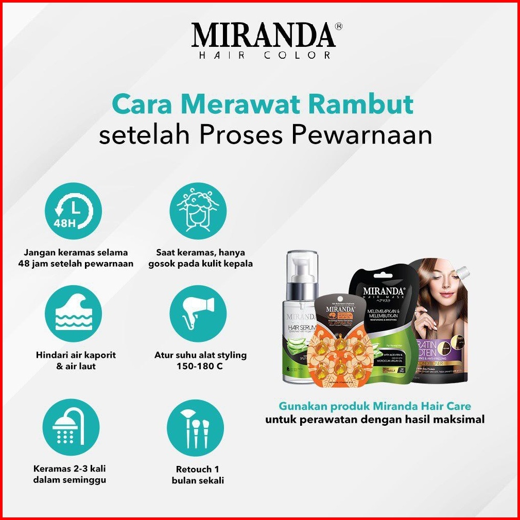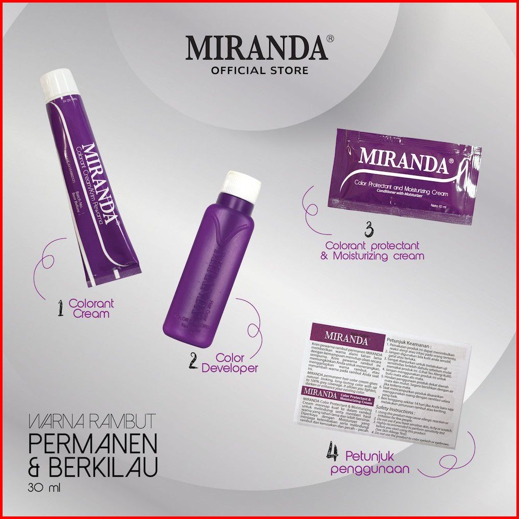 Paket 3pcs Miranda Premium Hair Color 30ml Cat Pewarna Rambut 3d Color