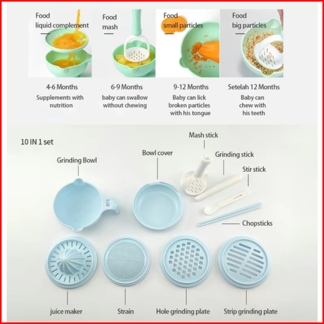 Hippo Land Multifungsi Grinding Bowl Baby Food Maker Alat Pembuat Makanan Bayi Mpasi Anak Set Isi 10 Pcs Mangkok Tempat