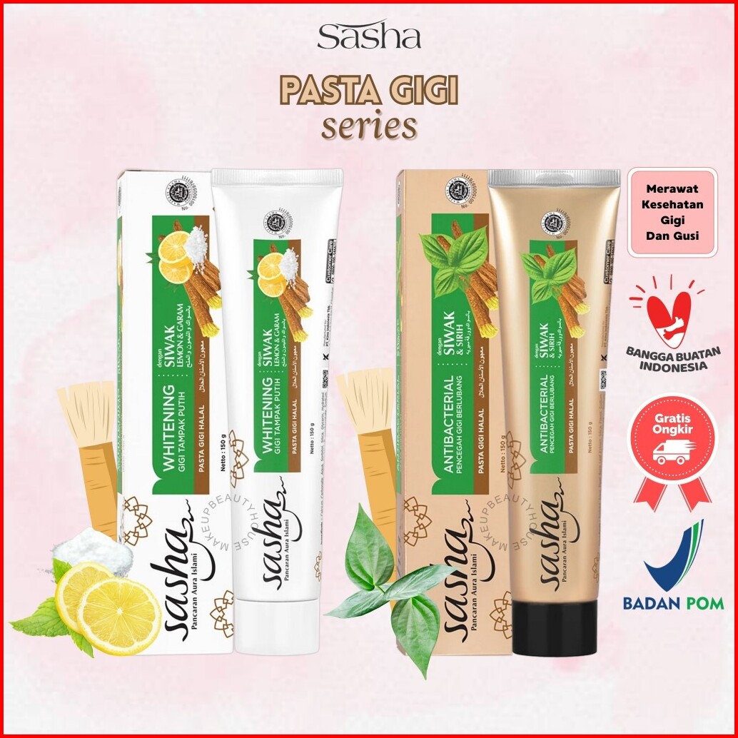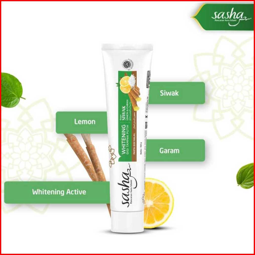 Sasha Pasta Gigi Whitening Antibacterial Siwak Sirih Lemon Garam - Pasta Gigi Halal