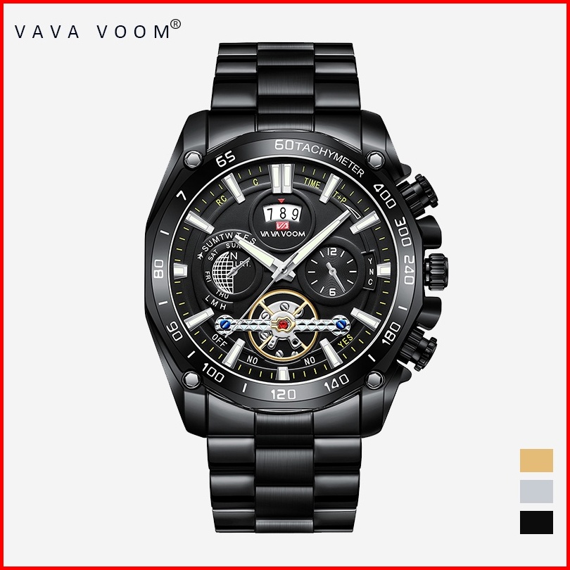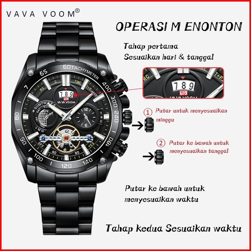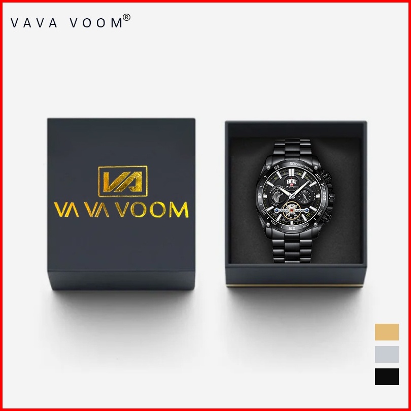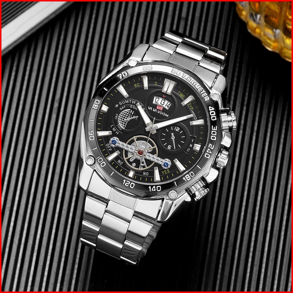 Vavavoom 2421 Jam Tangan Pria Stainless Steel Analog Quartz Original Tahan Air Watch Kotak Gratis