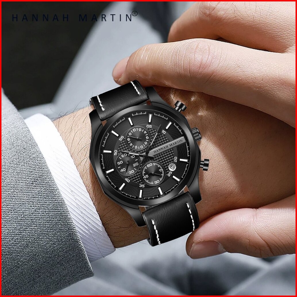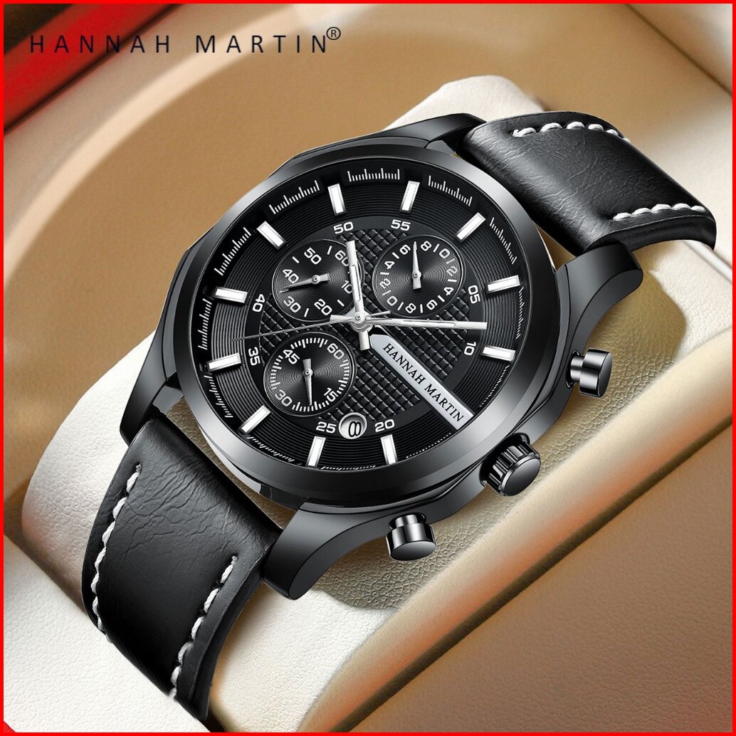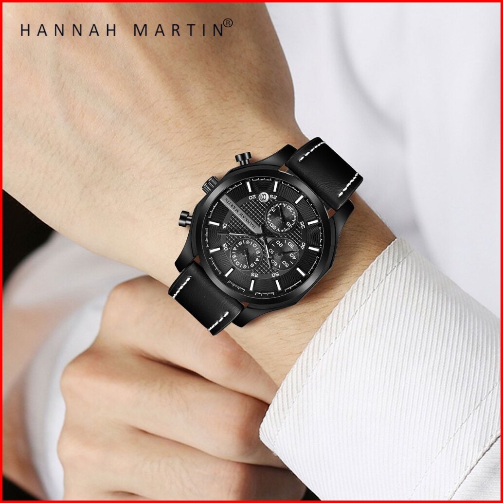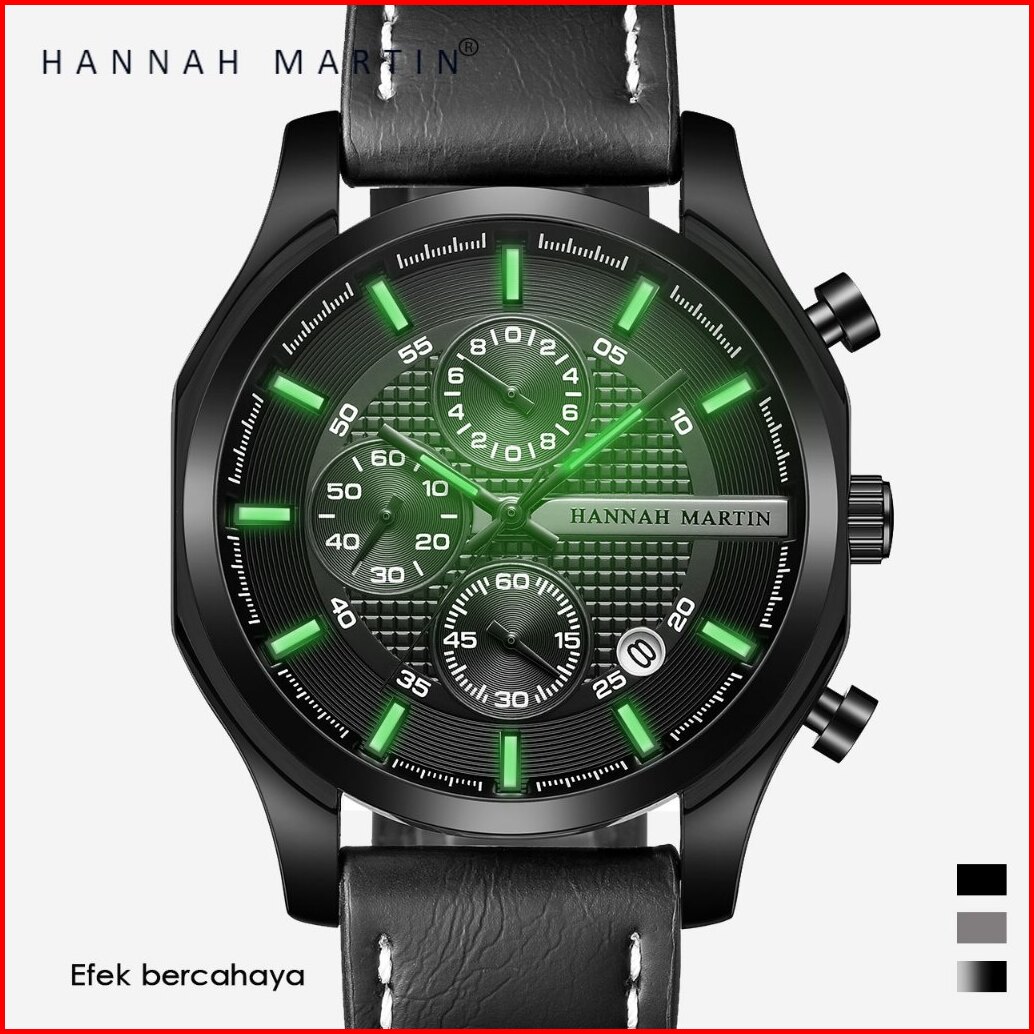 Hannah Martin Jam Tangan Pria 100 Original Fashion Olahraga Tanggal Analog Kulit Stainless Steel Tahan Air Cowok Kronogr