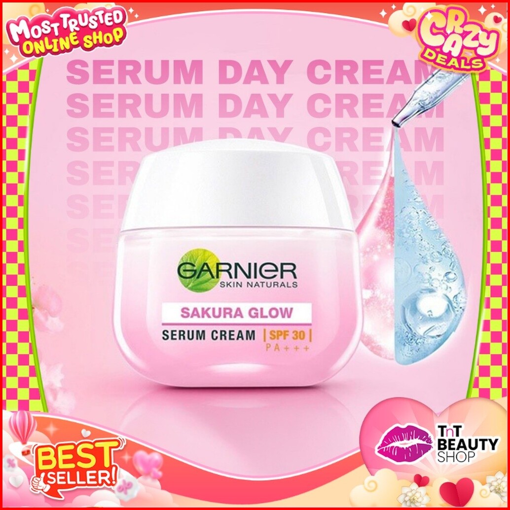 Garnier Sakura Whitening Glow Serum Day Cream Spf30 Pa - 50 Ml Untuk Kulit Cerah Merona Tnt Beauty Shop