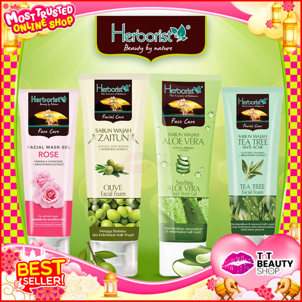 Herborist Facial Wash 80gr Sabun Wajah Tea Tree Zaitun Aloe Vera Rose Tnt Beauty Shop