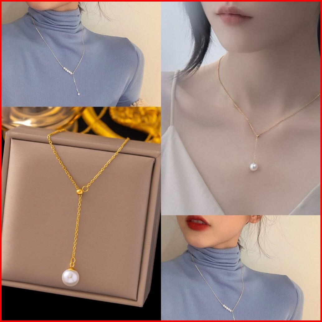 Acc050 Kalung Mutiara Tarik Ulur Rantai Korea