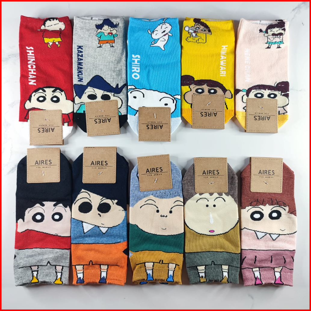 Kaos Kaki Wanita Karakter Crayon Shinchan Masao Kazama Nene Shiro Bo Chan Himawari Japanese Brand