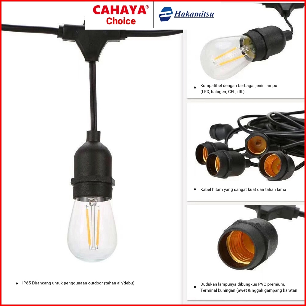 Cahaya - Fitting Lampu Gantung Outdoor 10 Meter 10 Fitting Lampu Gantung Dekorasi Kabel Fitting Outdor Lampu Hias