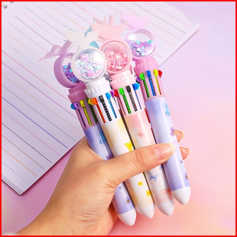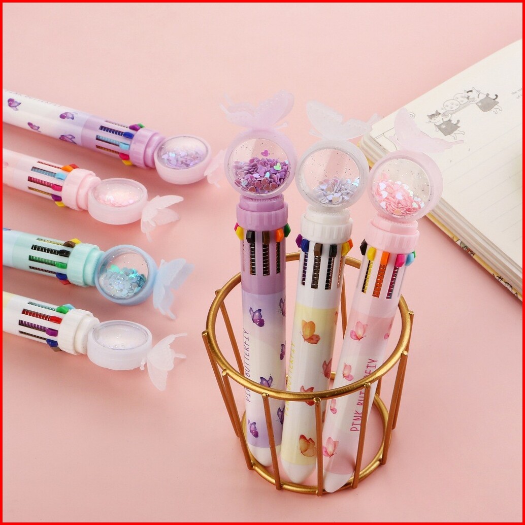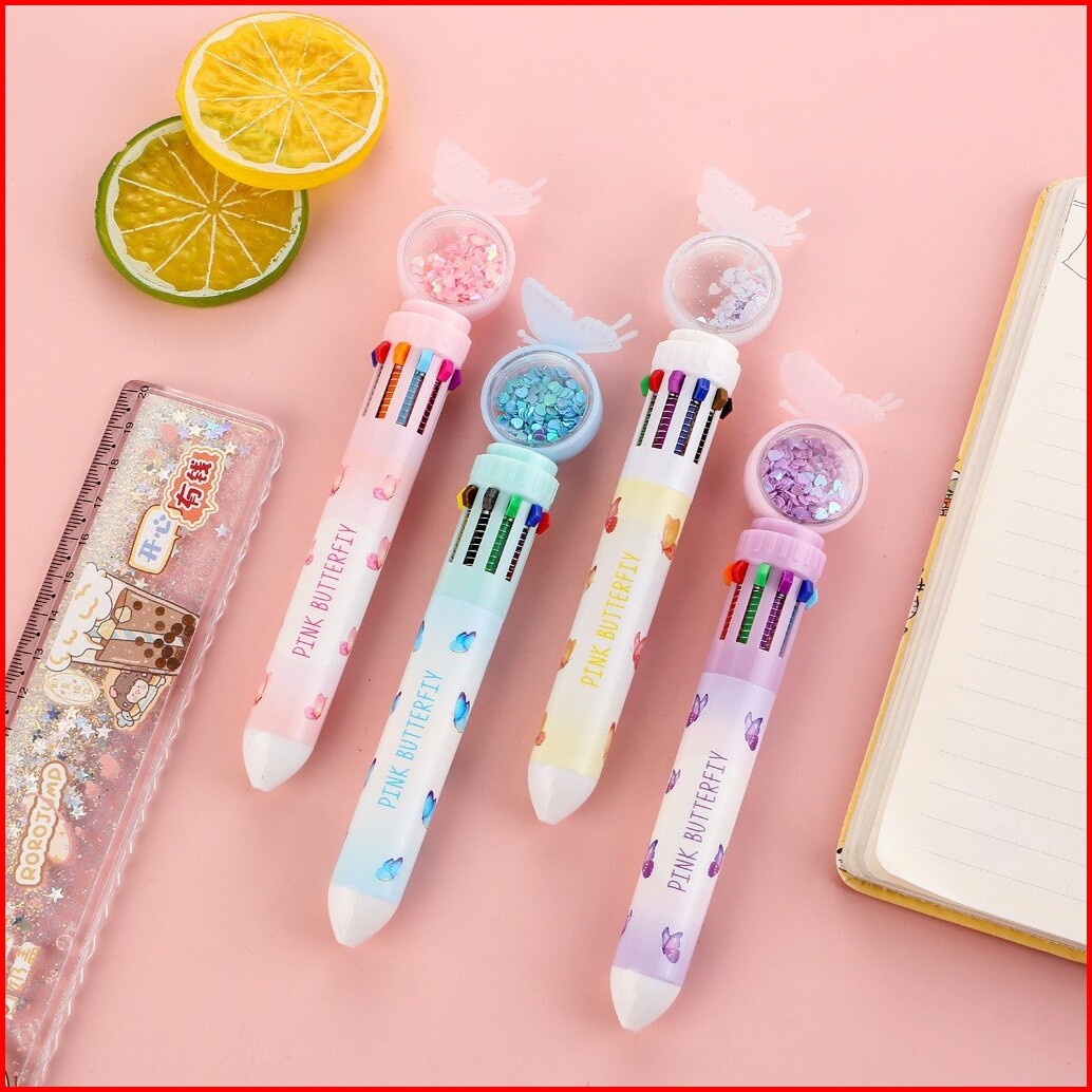 Hc Pulpen Gliter Motif Kupu-kupu Pulpen 10 Warna Aesthetic Pena Ballpoint Karakter Lucu