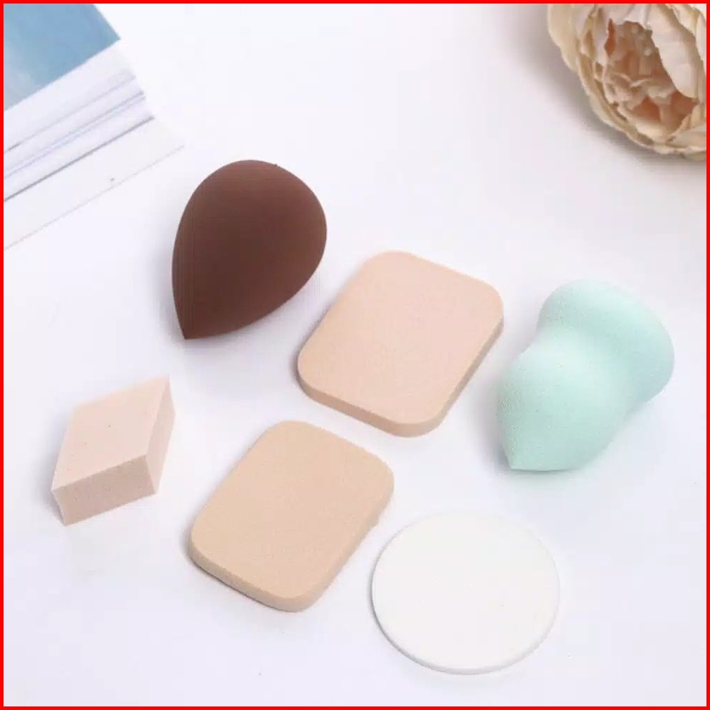 Hc Spons Make Up Set 6 In 1 Blending Beauty Sponge Blender Bedak Isi 6 Pcs Powder Puff Foundation Makeup Puff Wajah Kema