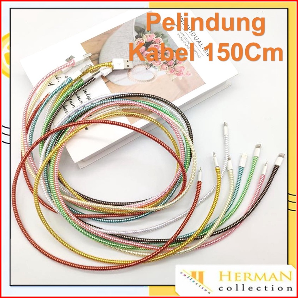 Hc Pelilit Kabel Spiral Warna Metalic 150cm Pelindung Cable Hp Charger Universal Cord Protector Color Lilitan Kabel Head