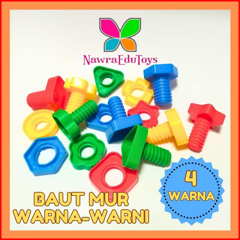 Mainan Edukasi Bongkar Pasang Baut Mur Warna-warni Plastik Montessori Toys