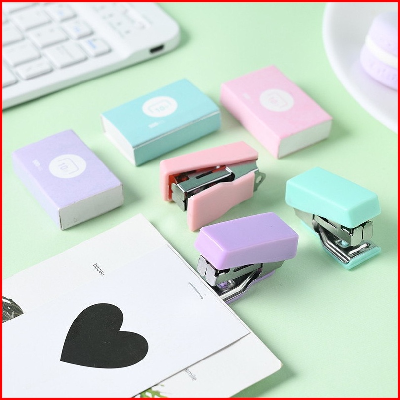 Hc Mini Stapler Set Macaron Color Staples Mini Ukuran Kecil Unik Kemasan Box Lucu Free Isi Warna Pastel Perlengkapan Kan