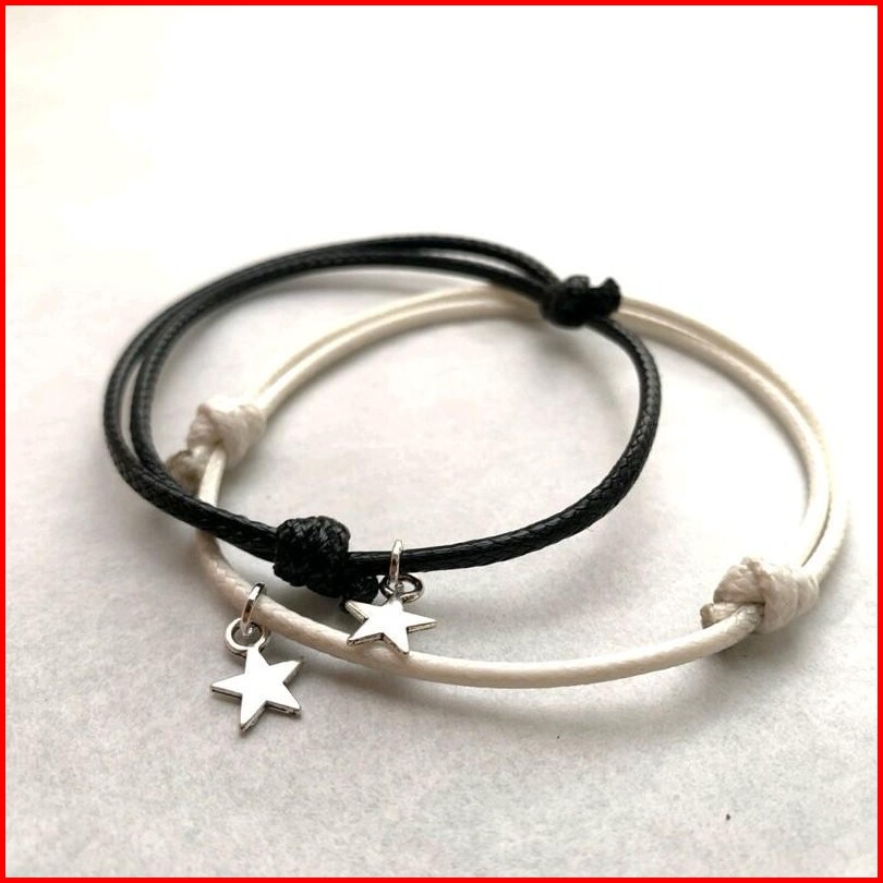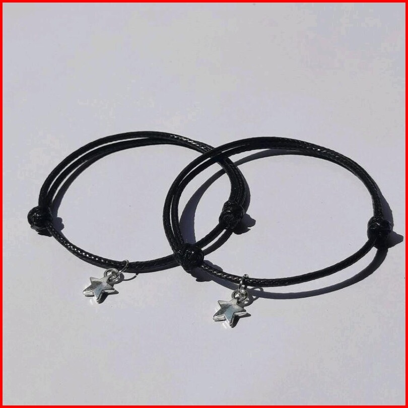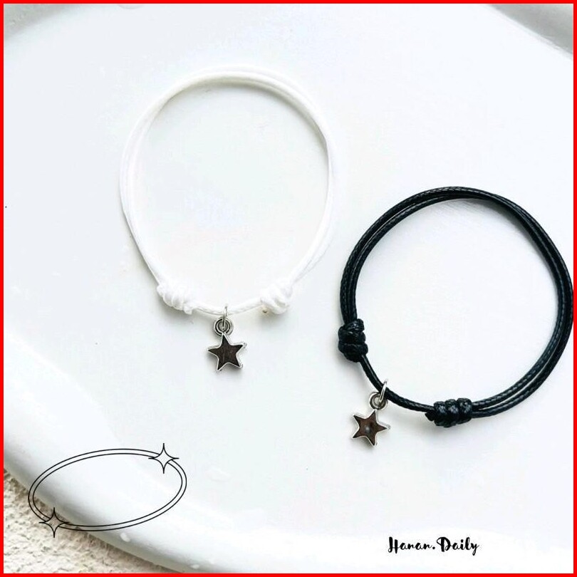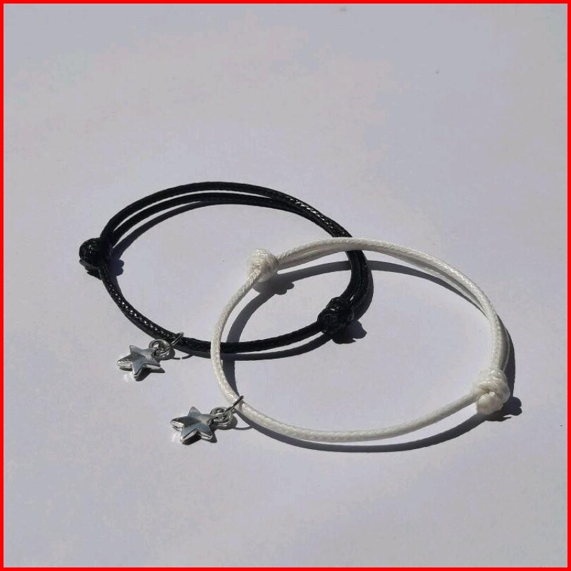Sepasang Gelang Couple Bintang Gantung Rodium Gelang Pasangan Gelang Tali Korea Waterproof