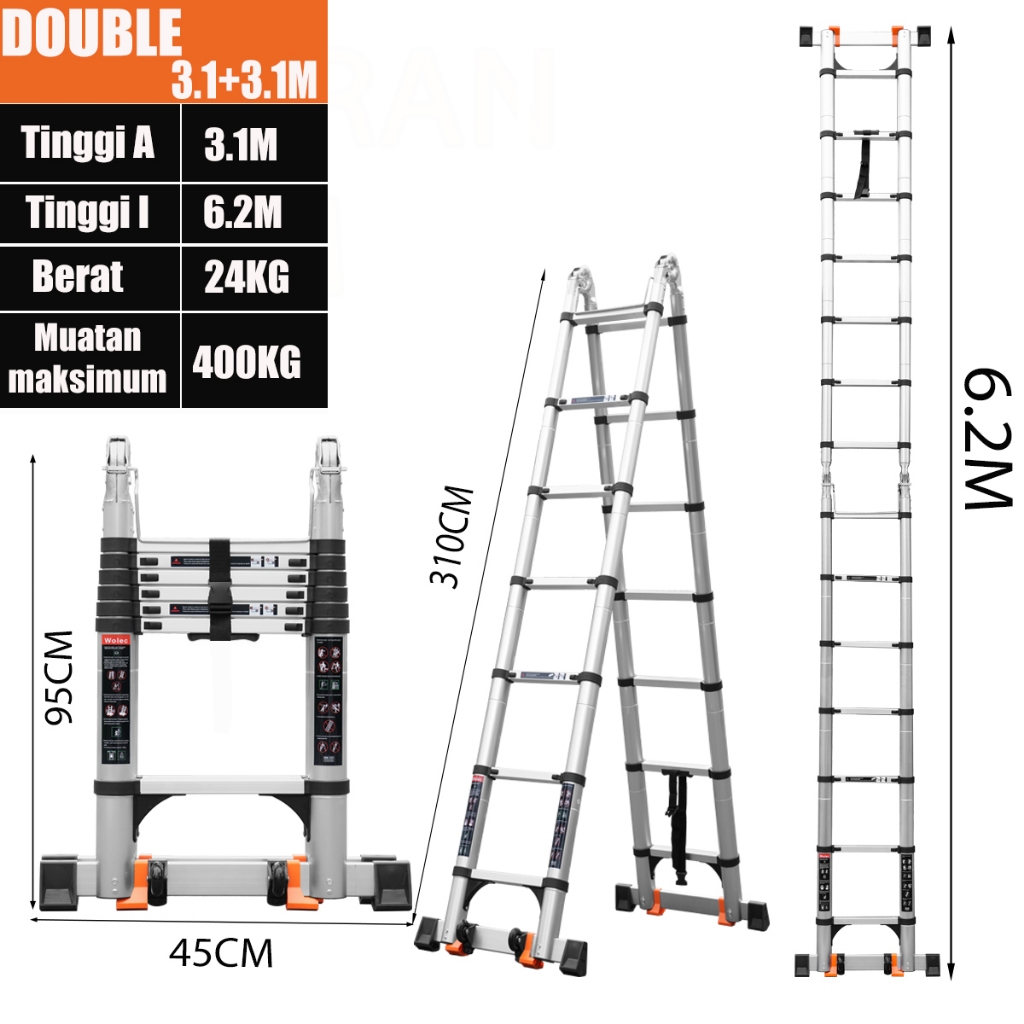 IXCE Teleskopik Double Tangga Lipat Aluminium Multifungsi Teleskopik 5/6.2/8M untuk Rumah & Kantor
