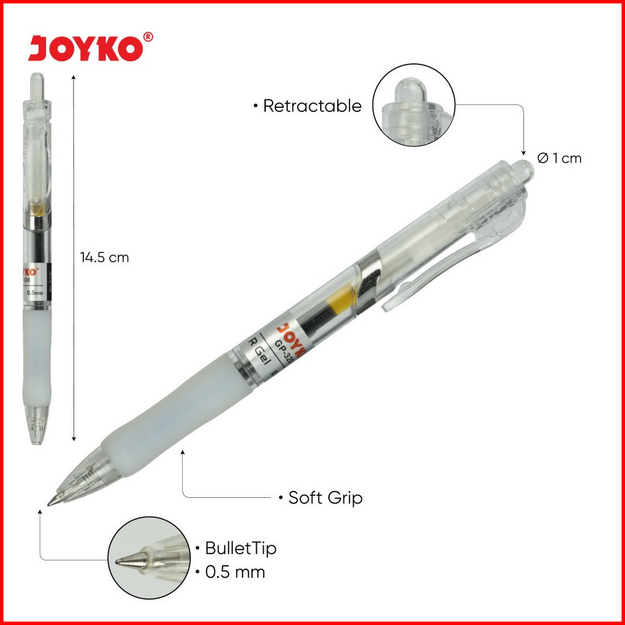 Joyko Pulpen Gel Pen Gp-320 R Gel 0.5mm Black Ballpoint Hitam Murah Berkualitas