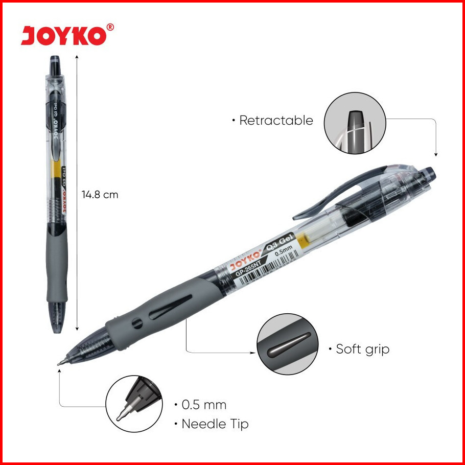 Joyko Q3 Gel Pen Pulpen Gp-265nt Needle Tip Ballpoint Berkualitas