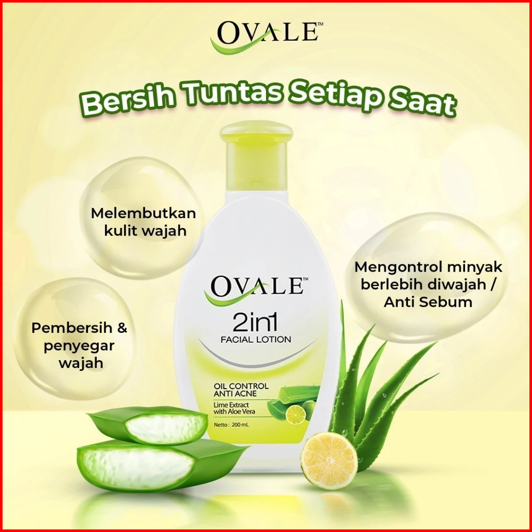 Ovale 2in1 Facial Lotion 60ml 100ml 200ml Pembersih Wajah Sekali Usap Facial Toner Kulit Kusam Kombinasi Berminyak