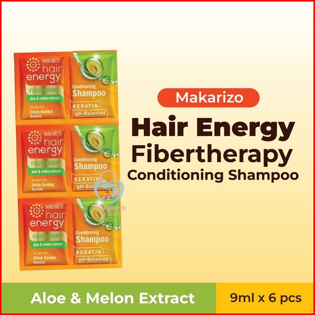 Paket Isi 12 Makarizo Hair Energy Fibertherapy Conditioning Shampoo 9ml Sachet - Royal Jelly Aloe Melon Citrus Tea Makar
