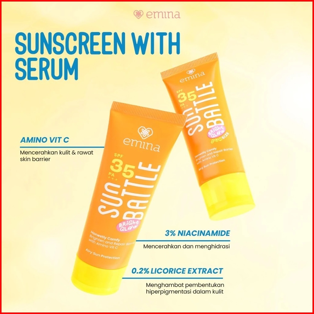 Emina Mini Sun Battle Bright Glow Brighten Spf 35 Pa 20ml Sunscreen Serum Wajah Amino Vitamin C Travel Size