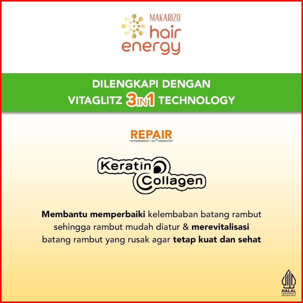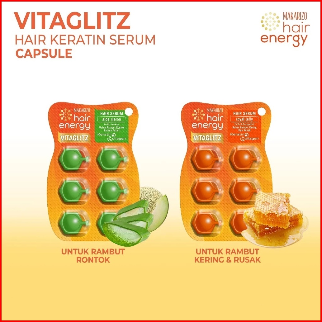 Makarizo Hair Energy Vitaglitz Hair Keratin Serum Repair 6x1 20x1 Ml Aloe Melon Royal Jelly Serum Rambut Vitamin Rambut