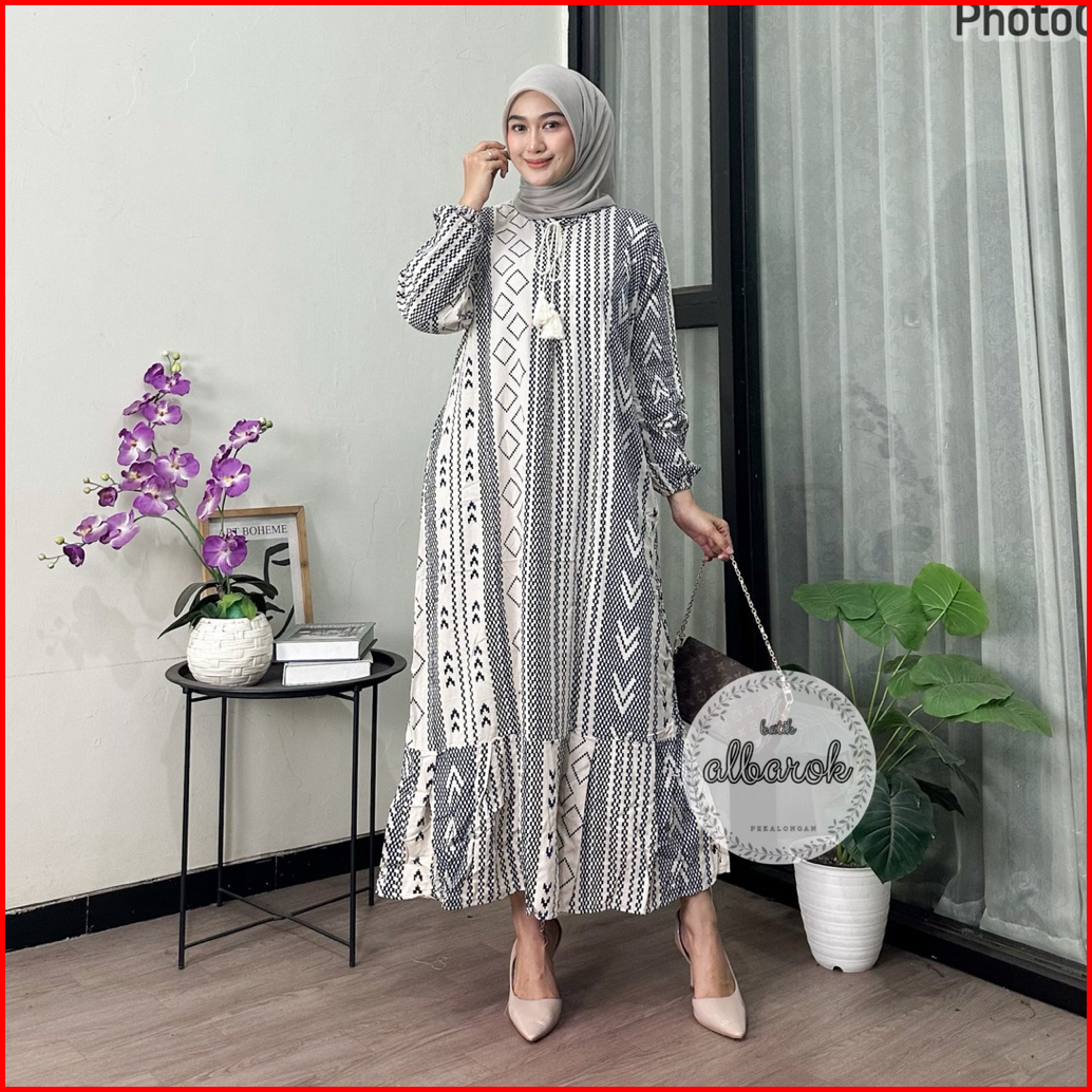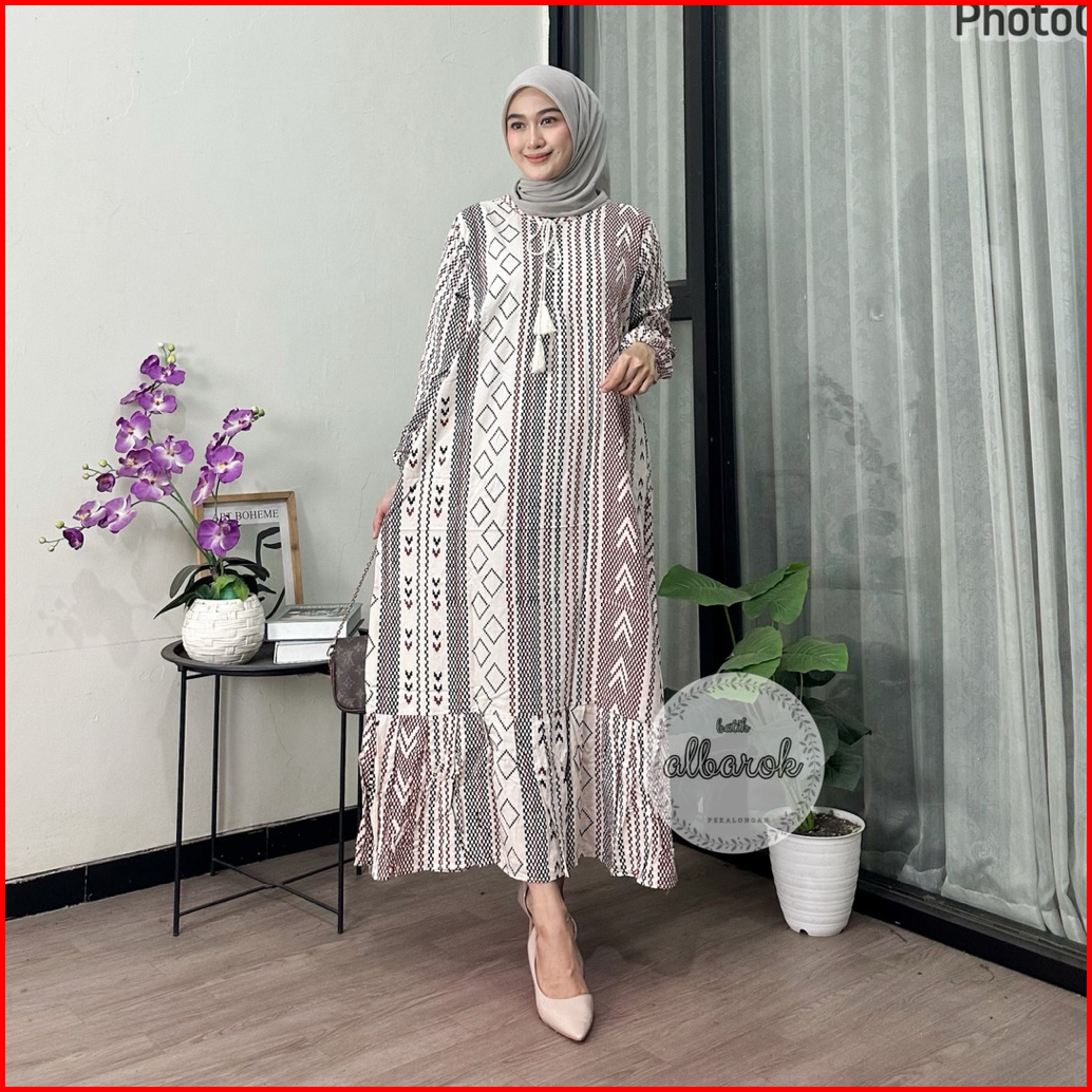Dress Midi Ronce Pb 130 Ld 120 Busui Muat Bb 85kg Bahan Rayon Premium Gamis Rayon Bahan Adem Motif Best Seller