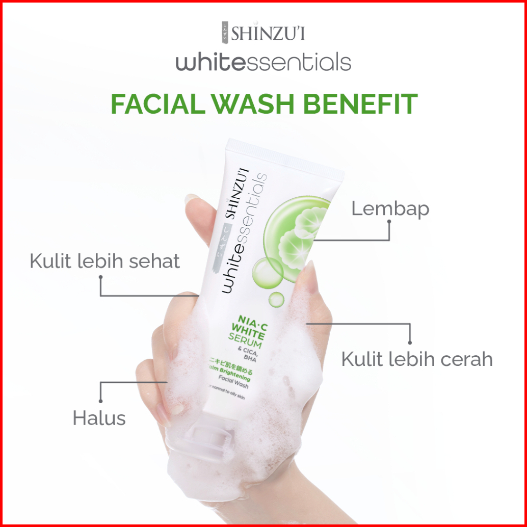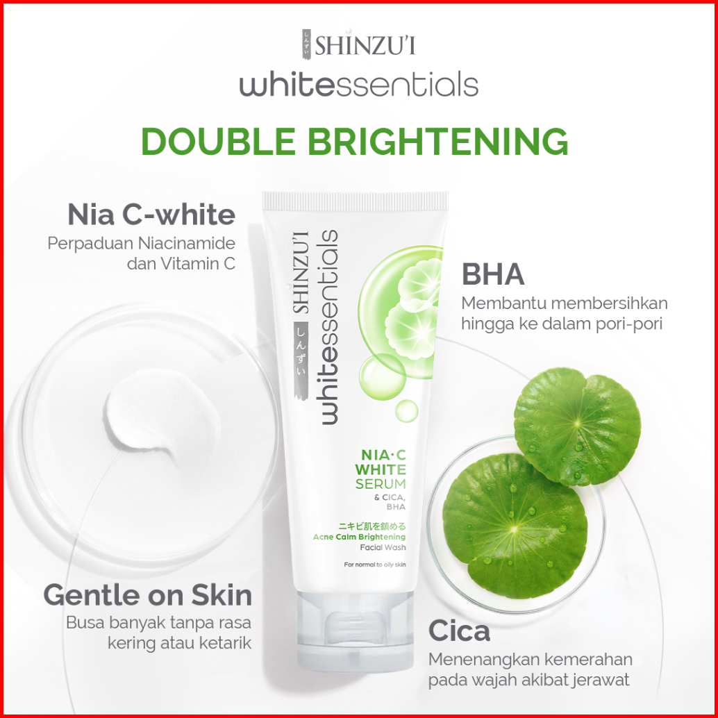 Shinzui Whitessentials Facial Wash 100ml 80 20 - Brightening Snow Mushroom Acne Calm Cica Bha 100ml Sabun Cuci Muka