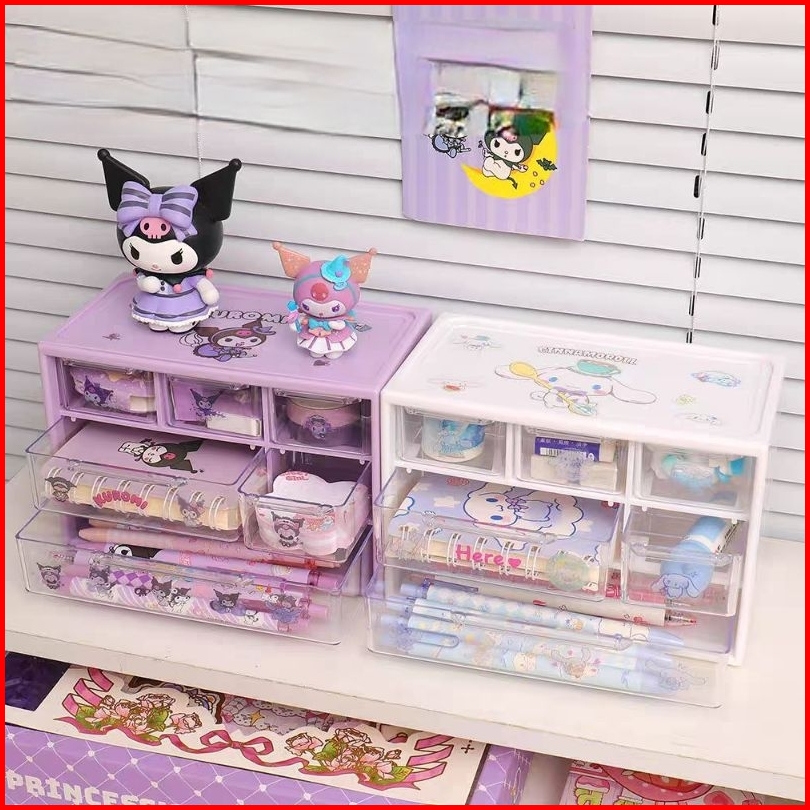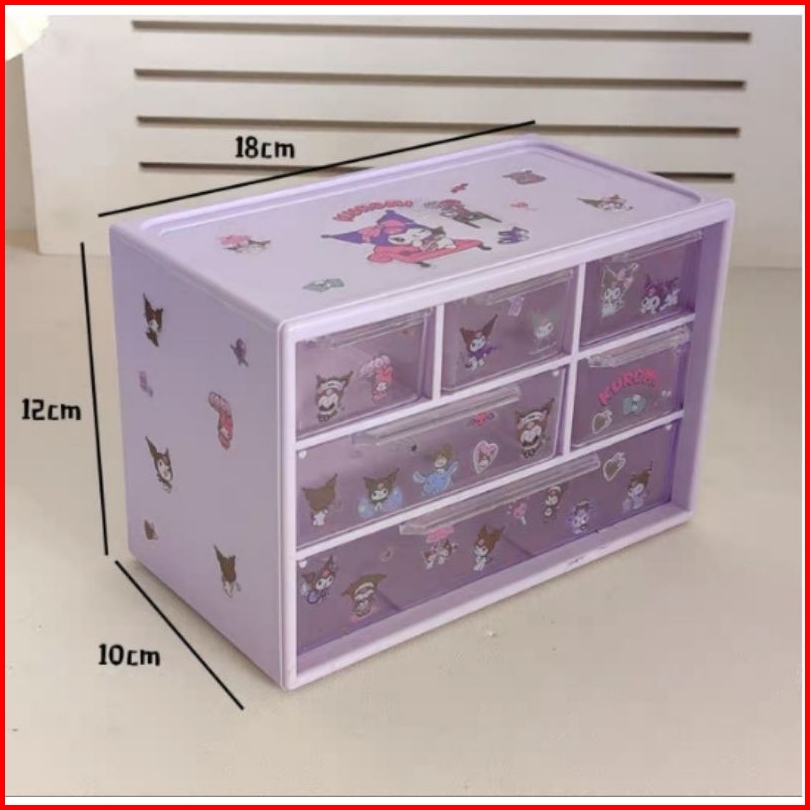 Rk3755 Kotak Rak Laci 6 Sekat Sanrio Free Sticker Penyimpanan Aksesoris Rak Lotso Kuromi My Melody Cinnamoroll
