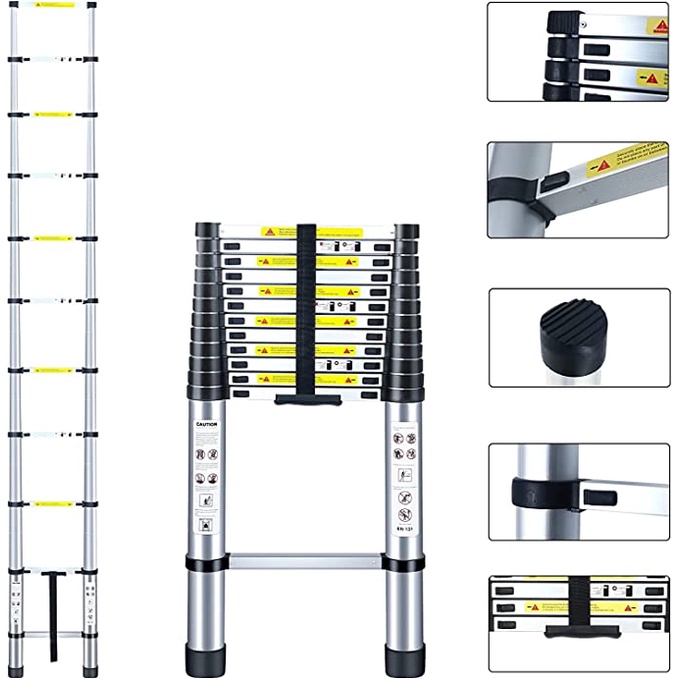 Tangga Teleskopik Aluminium Tangga Teleskopik Single Telescopic Ladder 2.6M/3.2M/3.8M/4.4M/4.7M/5.4M/6.2M/8M Kemasan yan