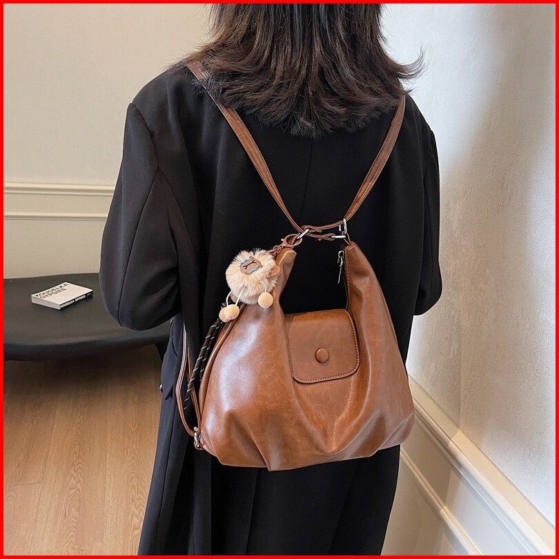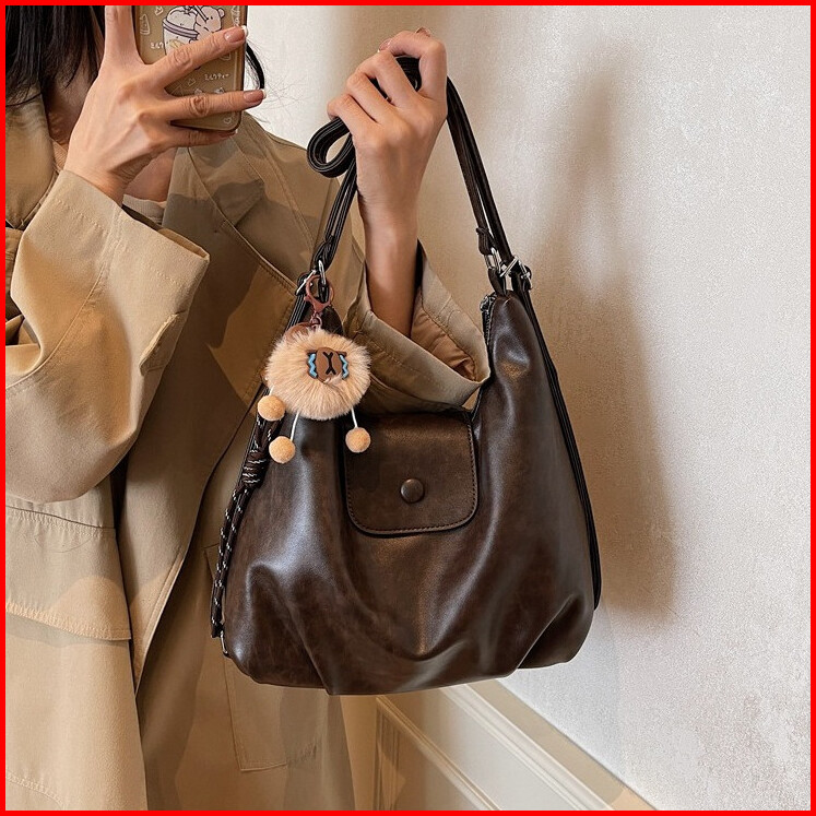 Nonabeautybarr Tas Selempang Wanita Kulit Tote Bag Vintage Shoulder Travel Bag