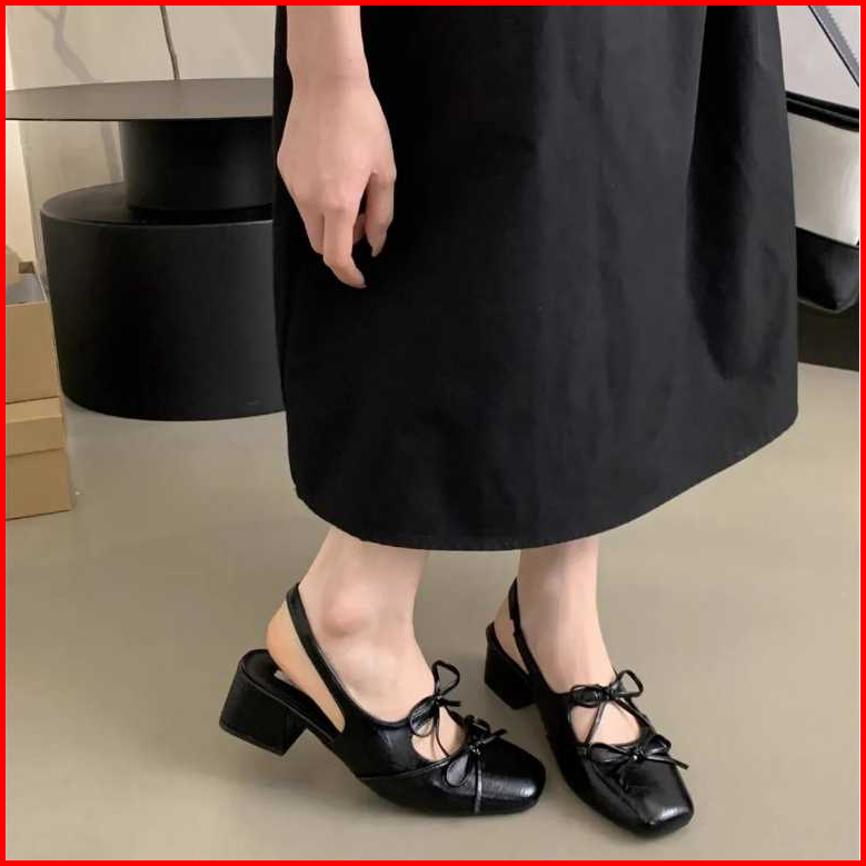 Pump Heels Allea Sepatu Kerja Wanita Model Pantopel Bustong Double Pita Gaya Cewek Kantoran-sandal Wisuda