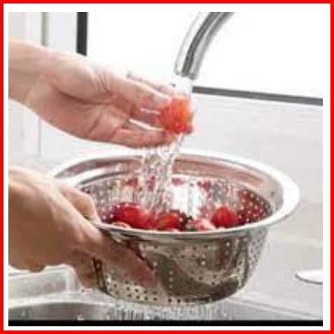 Wmk Saringan Beras Bakul Lubang Baskom Stainless Steel Rice Sieve - 22cm M-028 24 Cm M-029
