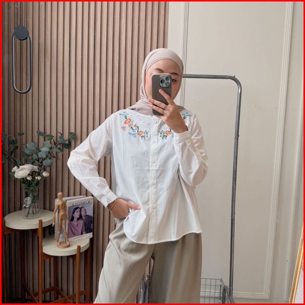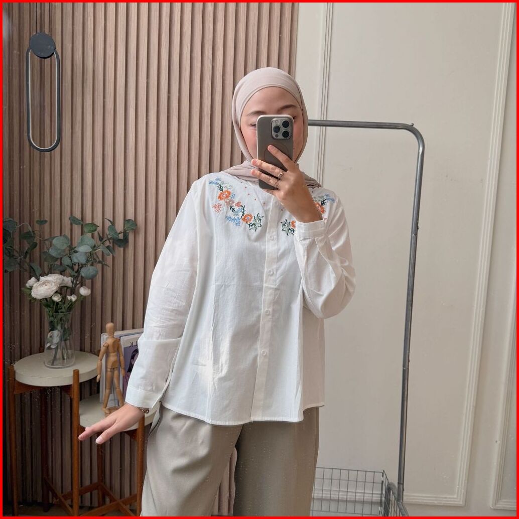 Oclo Delfina Shirt Basic Casual Atasan Kemeja Wanirta Lengan Panjang Bordir Bunga Dailywear Ocl02319
