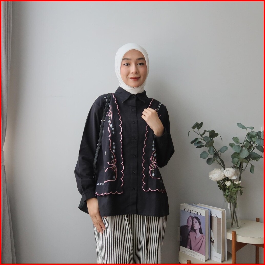 Oclo Nucha Shirt Bordir Katun Atasan Kemeja Wanita Ocl02445