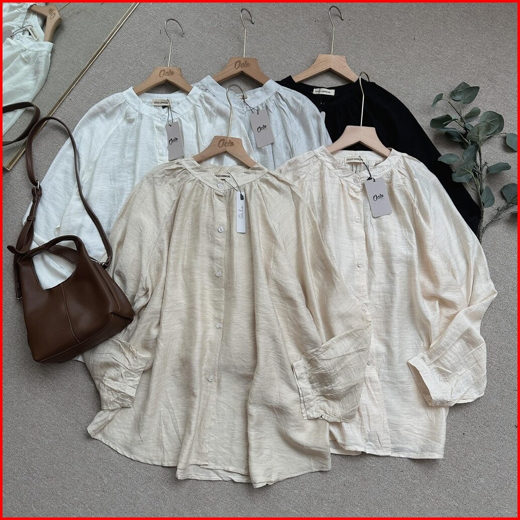 Oclo Zalina Blouse Atasan Wanita Kancing Polos Basic Casual Dailywear Terbaru Ocl01283