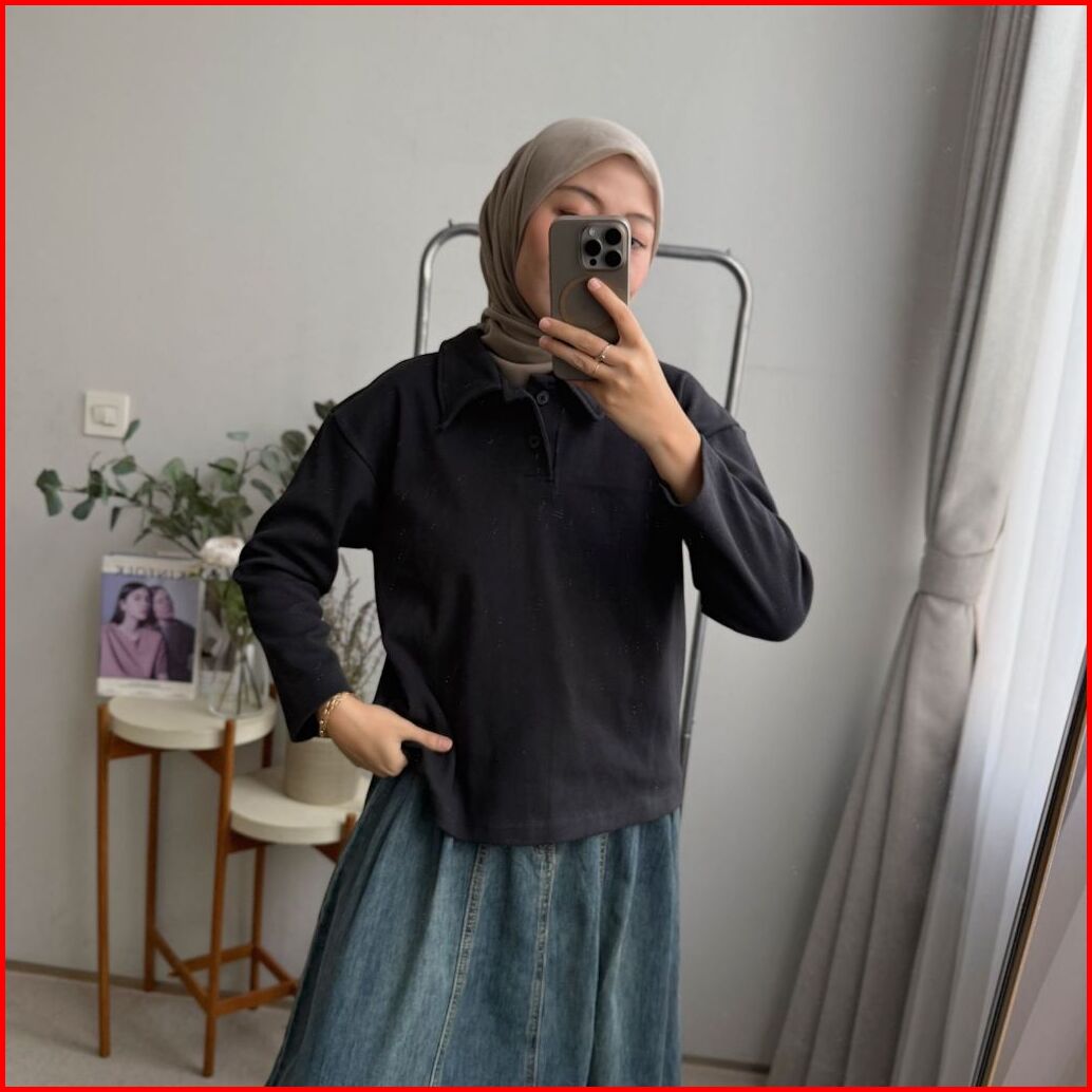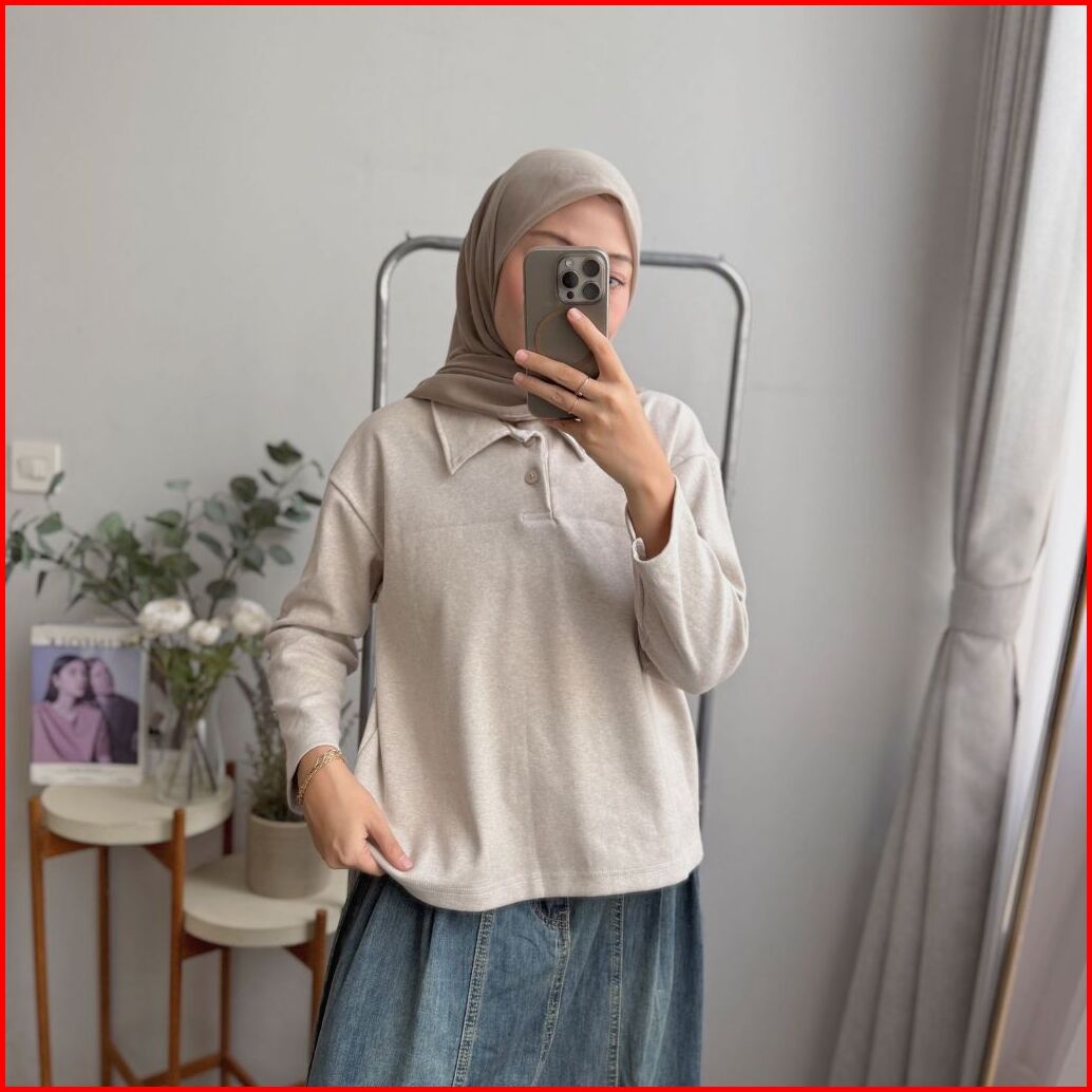 Oclo Floca Blouse Knit Polo Casual Basic Atasan Rajut Wanita Lengan Panjang Polos Ocl01310