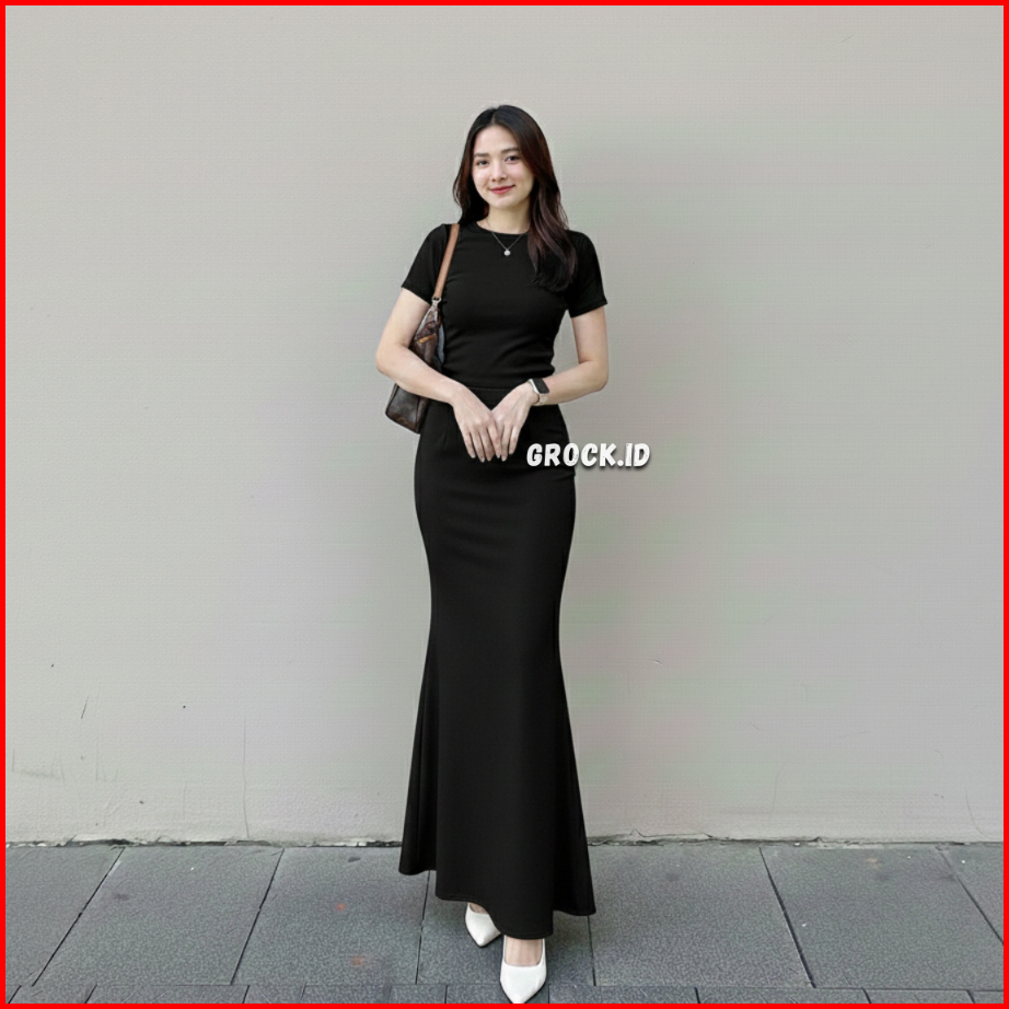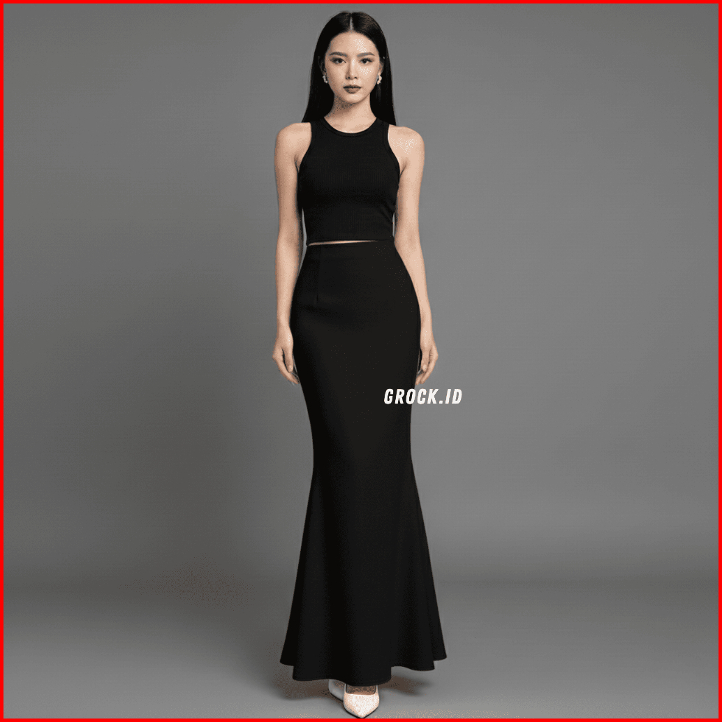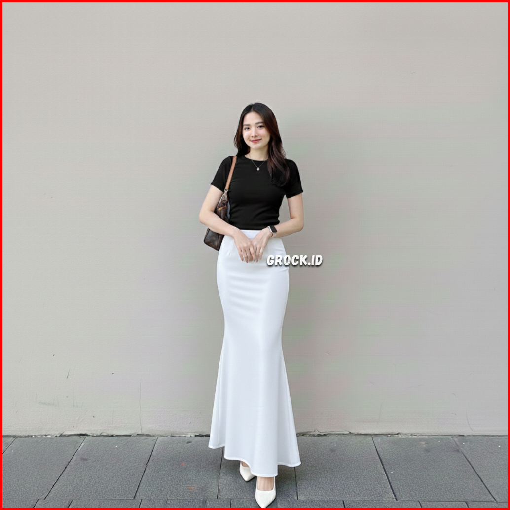 Lunar Mermaid Skirt - Scuba Premium Rok Flare Wanita Basic Polos - Maxi Midi Rok Panjang Wanita Adem Melar Elegan Kekini
