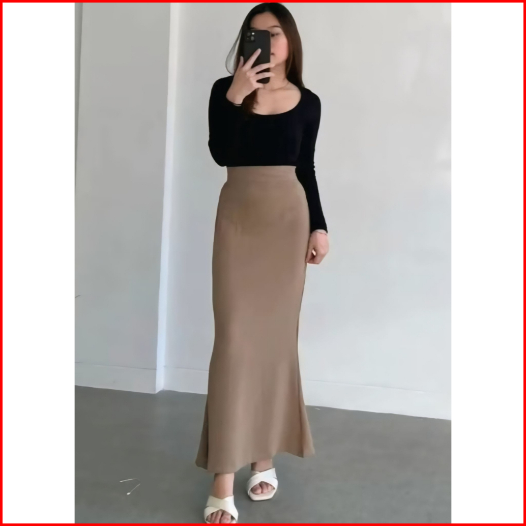 Skirt Rok Flare Lunar Mermaid Duyung Panjang Maxi Midi Wanita Bahan Scuba Melar Style Kekinian 2025